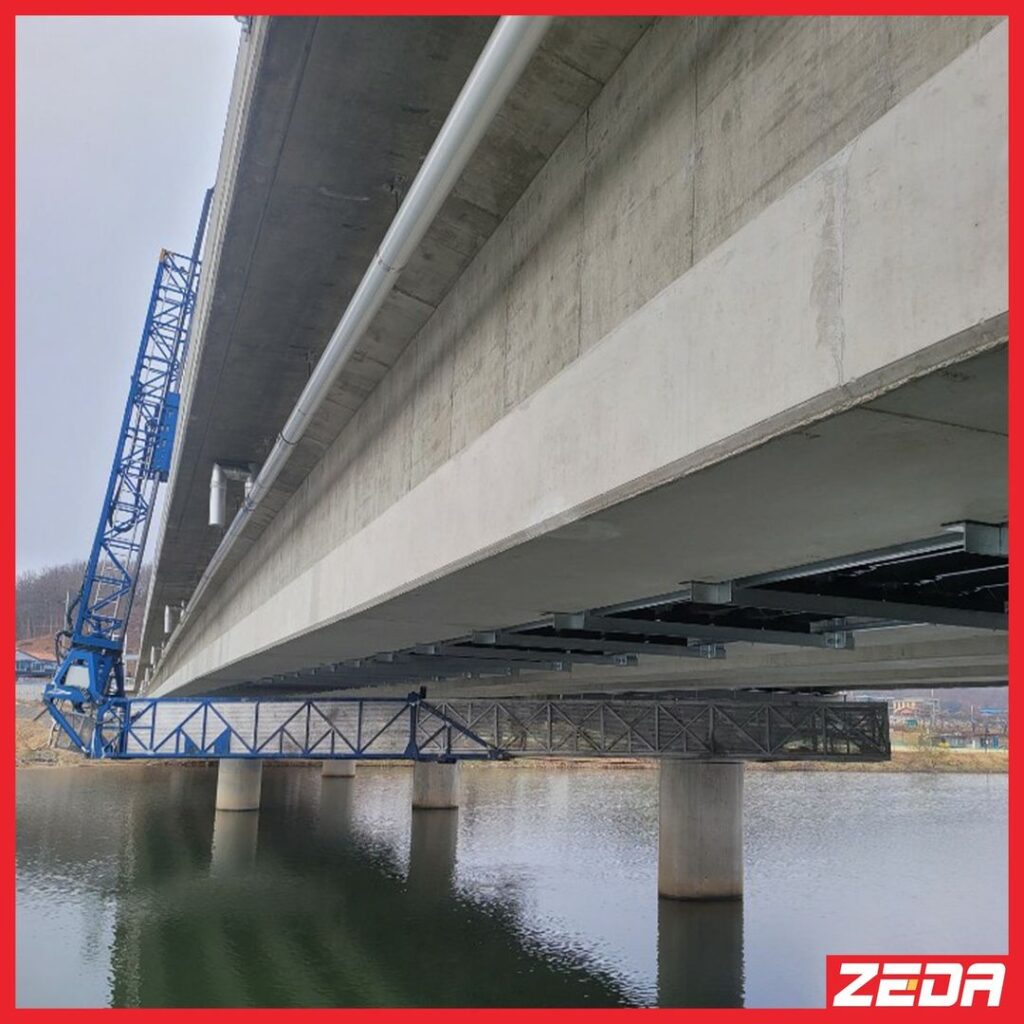 Ini adalah jenis derek atau crane yang dirancang khusus untuk melakukan inspeksi pada jembatan. Jembatan-jembatan memerlukan perawatan dan inspeksi rutin untuk memastikan bahwa struktur mereka tetap aman dan berfungsi dengan baik.